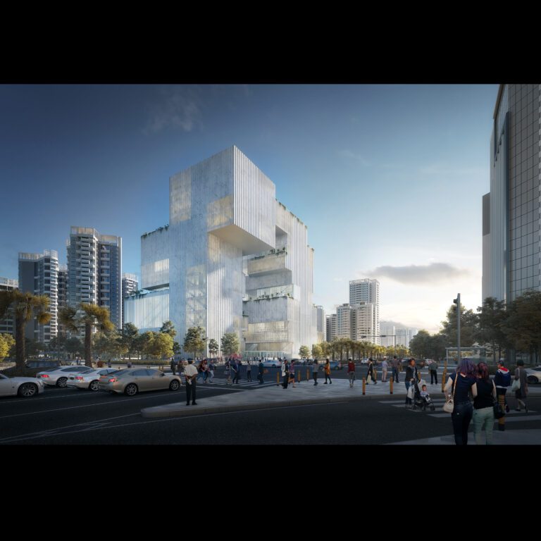 L’ensemble du bâtiment est disposé dans une direction est-ouest le long de l’avenue Shennan, et le Dream Theater et la salle de concert Starry Sky sont reliés horizontalement dans cette direction. Cette disposition est-ouest permet au Dream Theater et à la salle de concert de ne pas se gêner l’un l’autre et de partager un espace commun. L’accostage de la scène permet de relier les deux salles pour former un super théâtre lorsque l’allée commune est ouverte. Trois toits successifs couvrent délicatement les salles de spectacles, devenant une série de places publiques offrant un paysage unique et des espaces extérieurs. Les éléments du toit prolongent les espaces publics au-dessus du bâtiment.